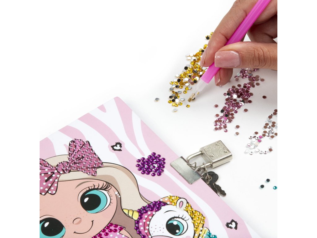 Sada se skládá z diáře, tříbarevného pera (černé, červené, modré), plastového stylusu pro nanášení diamantů, vosku, misky a více než 500 diamantů v 5 různých barvách. Jednotlivé prvky krytu mohou být individuálně zdobeny diamanty. Deník má visací zámek a 60 potištěných stránek.