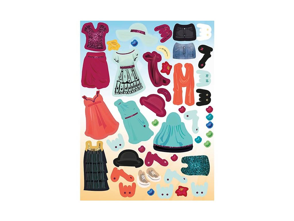 Samolepková knížka plná módy obsahuje 24 stran a více než 300 samolepek šatů, bot a doplňků.