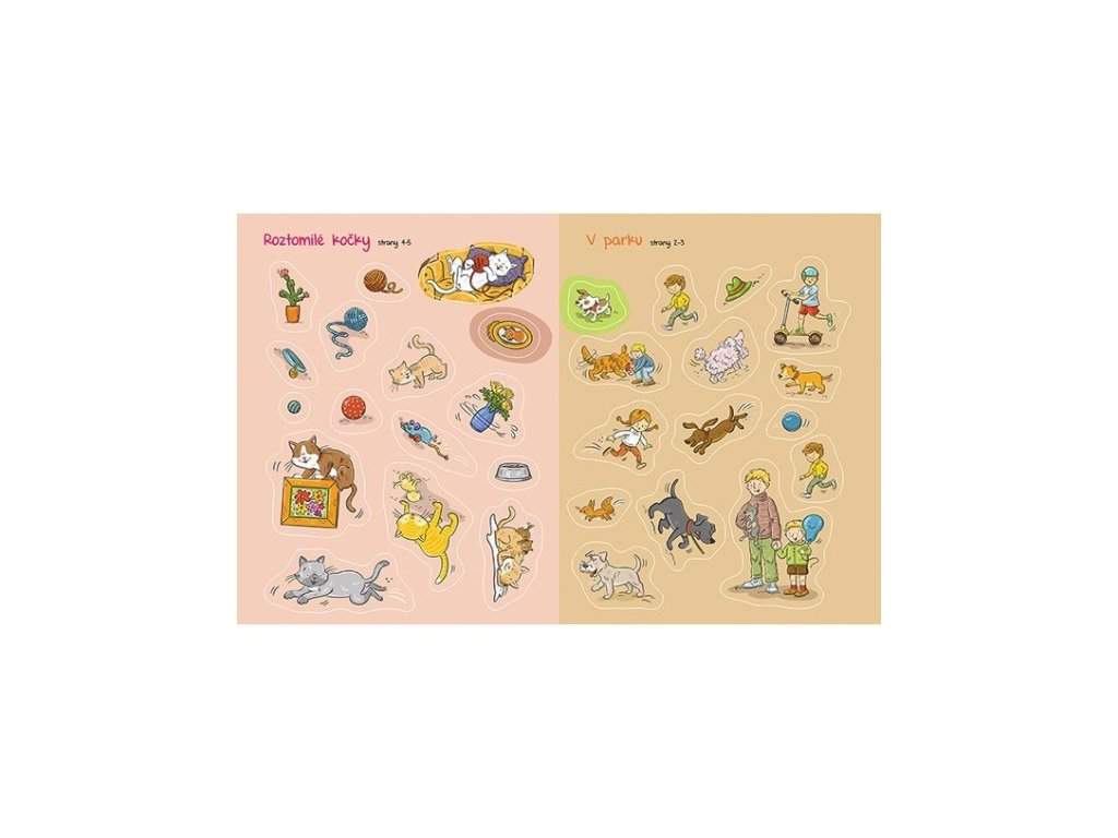Znáš všechna domácí zvířátka? Otevři knížku a navštiv hravé pejsky, roztomilé kočky i zvířátka ze statku. Probuď obrázky k životu a vytvářej scény s úžasnými samolepkami. Samolepková knížka obsahuje 16 stran a více než 130 barevných samolepek k dolepení.