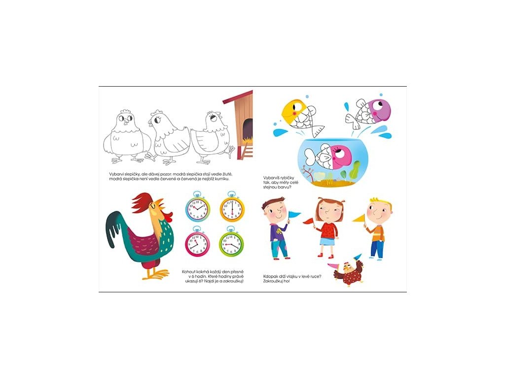 Samolepková knížka obsahuje 16 barevných stran a 8 stran samolepek k dolepení.