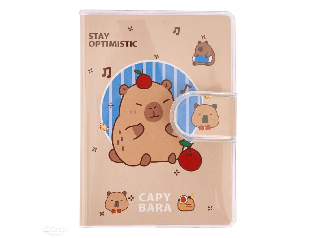 Praktický a okouzlující zápisník v praktickém formátu A7, ideální pro každodenní poznámky. Je vybaven zapínáním na suchý zip, které chrání stránky před ohýbáním a zajišťuje pohodlné používání. Obsahuje 70 listů a jeho obálka zdobí okouzlující motiv kapybary v jemném béžovém odstínu. Perfektní volba pro milovníky kapybar a ty, kteří si cení stylových a funkčních kancelářských doplňků.