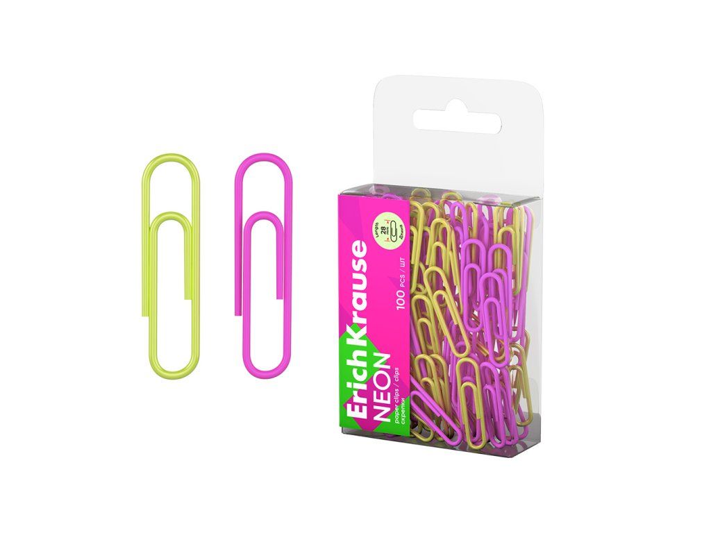 Sponky kancelářské 28 mm kulaté ErichKrause Neon 100ks mix barev