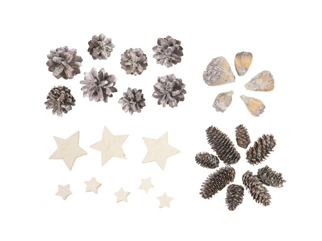 | Pomůcky na vánoční tvoření: | přízdoby na věnce, svícny |