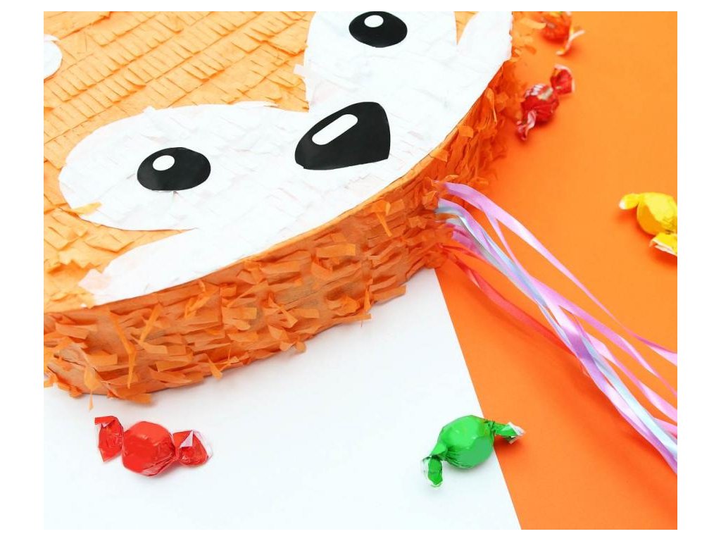 Obsah lze snadno vysypat zatažením za provázky - piňata tak zůstane nepoškozena. Ručně vyrobený výrobek, každý exemplář se může lišit od modelu na fotografii v odstínech barev, tvaru nebo velikosti. Piňata liška 35x7.5x27 cm