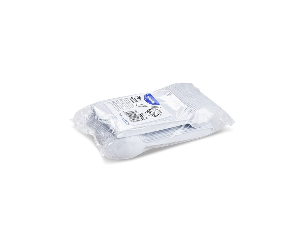 Lžíce polévková opakovaně použitelná 185 mm PP bílá, 50 ks