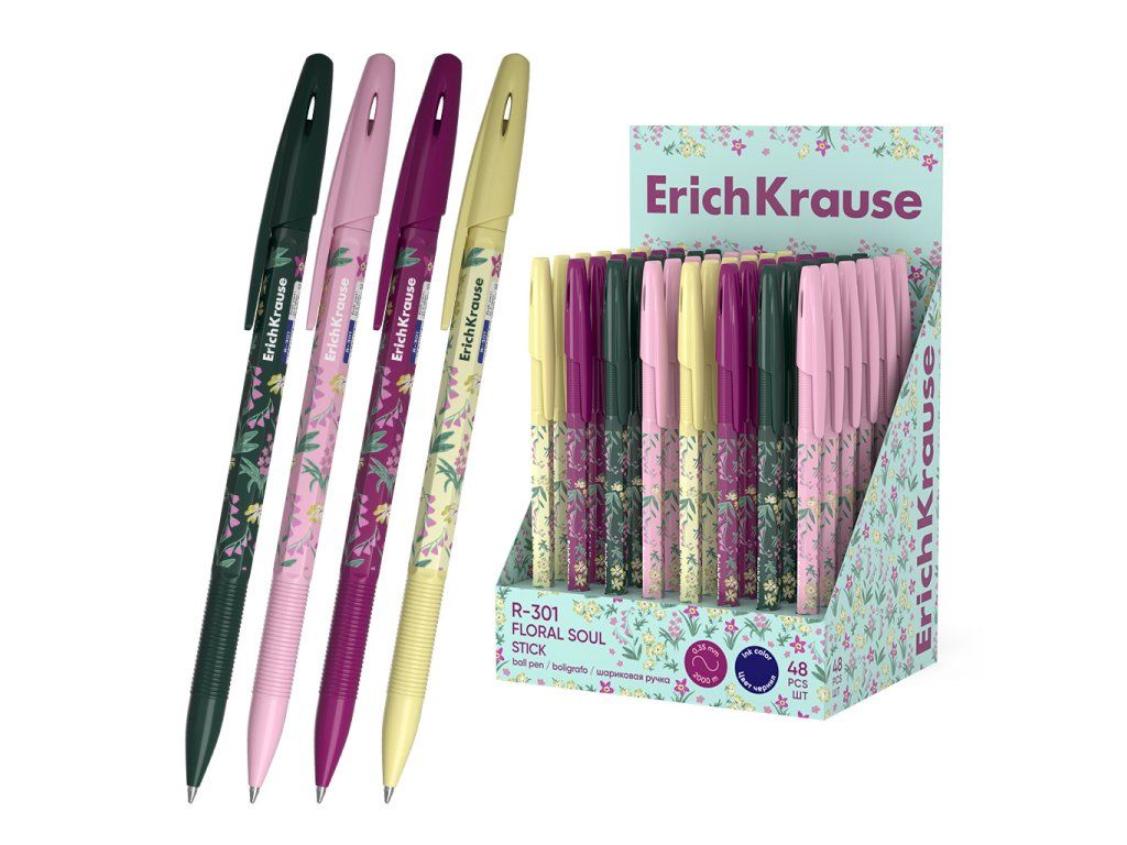 Pero kuličkové ErichKrause R-301 Floral Soul Stick s víčkem - modrá náplň
