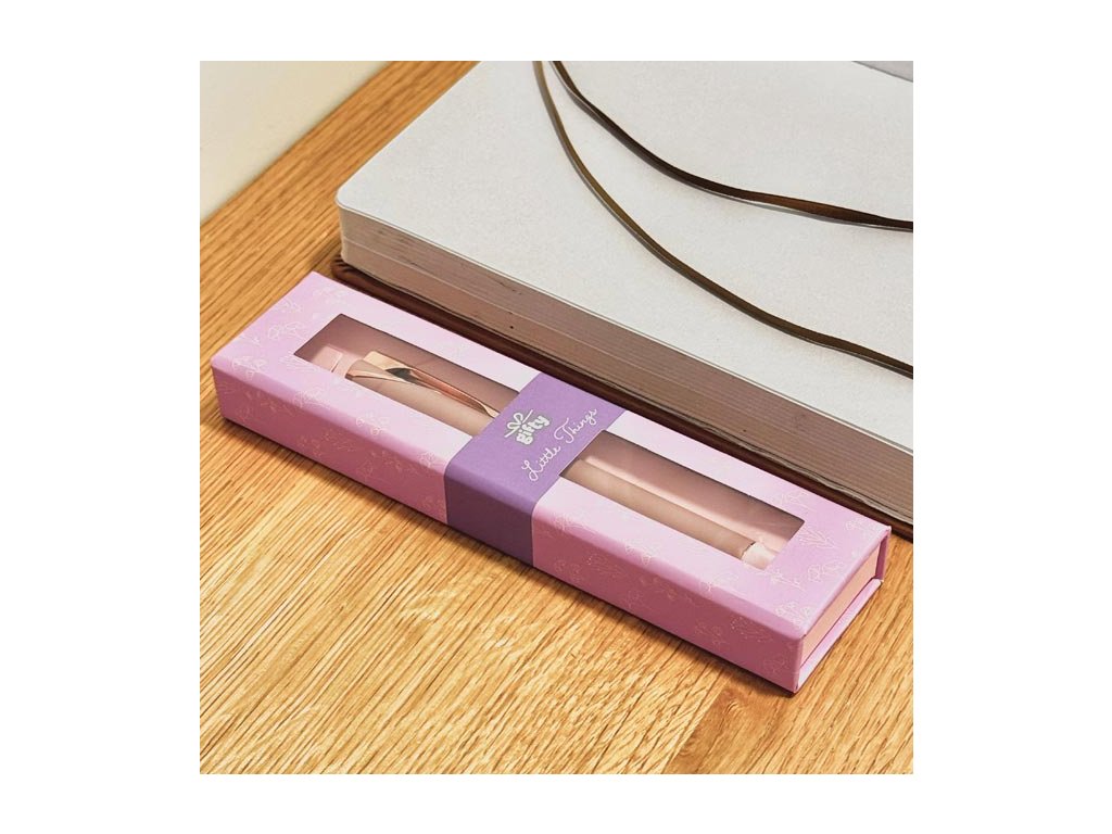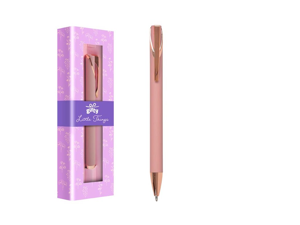 Psaní se stává zážitkem s dárkovým perem Gifty – natural z řady Little Things, které kombinuje matný tělově růžový odstín (natural pink) s jemnými kovovými detaily v barvě rose gold. Jeho elegantní design a lehká konstrukce zajišťují maximální komfort při psaní, ať už si zapisujete myšlenky, plánujete den nebo podepisujete důležité dokumenty.