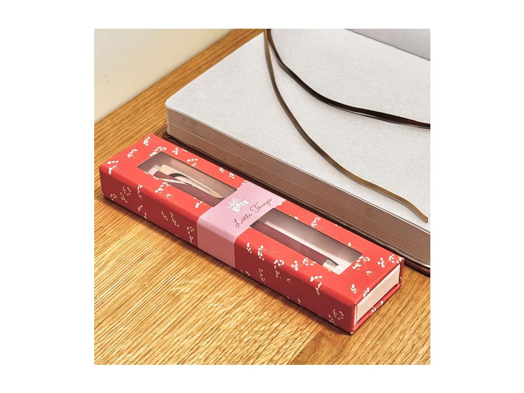 Dárkové pero od Gifty – red z řady Little Things je dokonalým spojením stylu a výjimečnosti. Jeho kovové detaily v trendy odstínu rose gold přitahují pozornost v kontrastu s matnou červenou barvou.