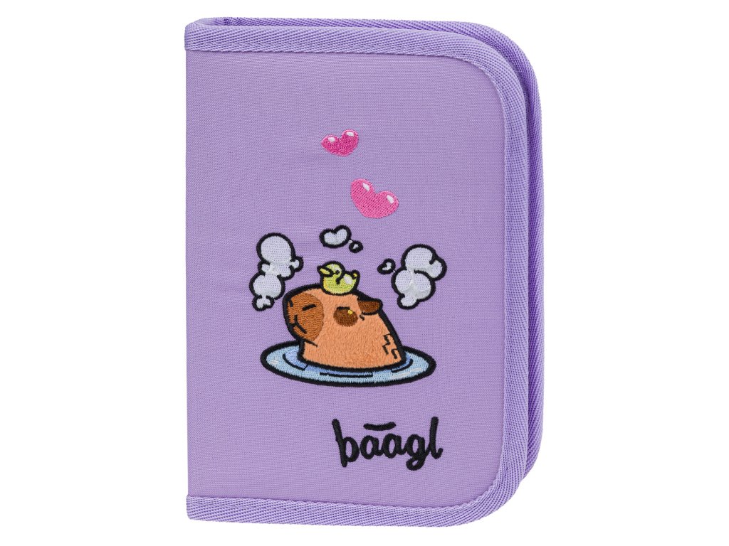 Prostorný penál s logem BAAGL. Součástí penálu je hlavní kapsa a výklopná kapsička s přepážkou a gumičkami na tužky a jiné psací potřeby.
