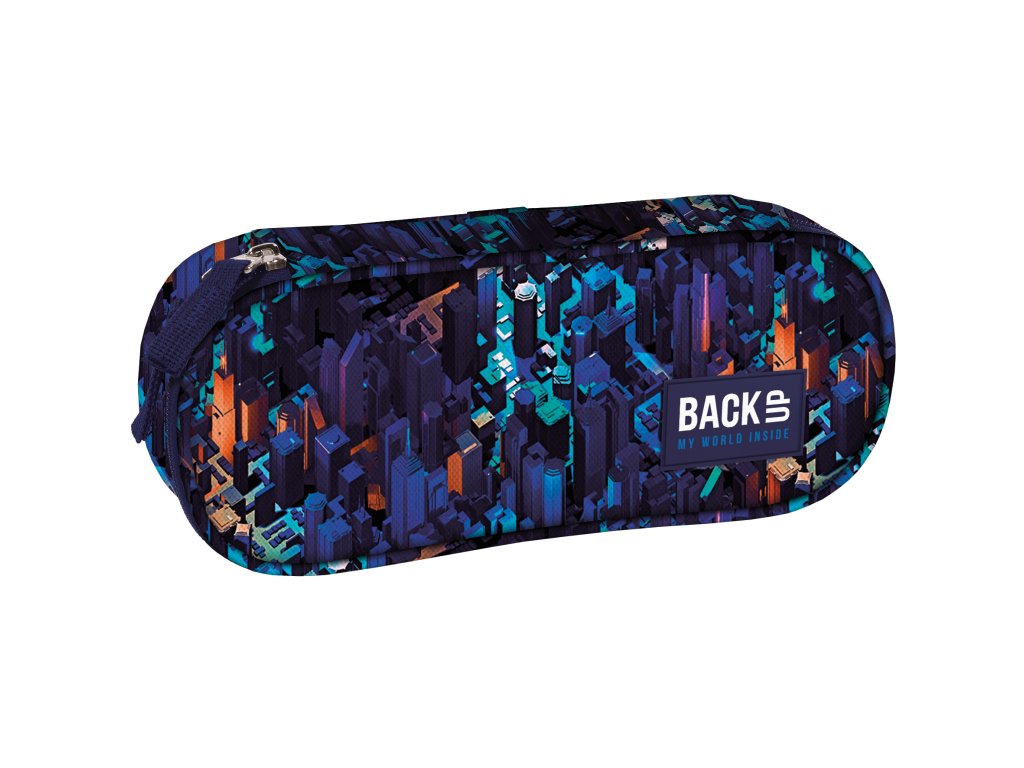 Město rušné v noci životem. Materiálem tohoto penálu pro mládež se táhnou tyčící se obrysy mrakodrapů v různých odstínech modré. Odstíny oranžové připomínají paprsky zapadajícího slunce dopadajícího na skleněné mrakodrapy. Městský penál doplňují tmavě modré zipy a patentky.