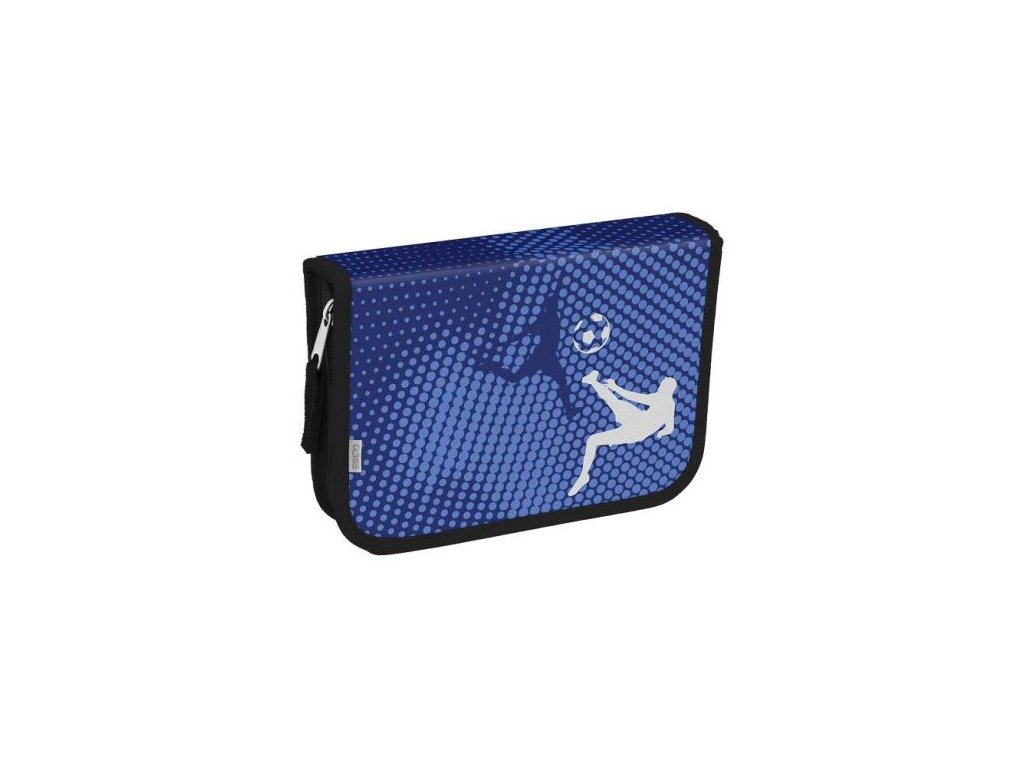 Jednopatrový penál se dvěma chlopěmi pro uložení školních potřeb. S motivem kostiček pro kluky.