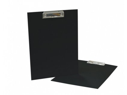 Psací podložka – černá dvojdeska s klipem na dokumenty velikosti A4. Klip je kovový, nýtovaný. Dvojdeska vyrobena z pevného papírového kartonu a potažená PVC. Na vnitřní straně desek v levém rohu 1 plastová průhledná kapsa. Šířka hřbetu cca 1 cm umožňuje vložení přibližně 100 listů běžného kancelářského papíru.