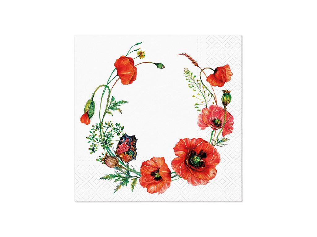 Papírové ubrousky TETE a TETE 20ks 33x33cm Makový věnec
