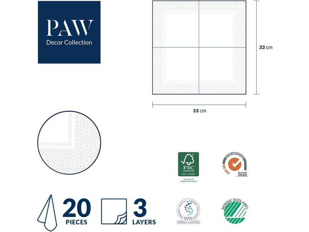 Rozměr 33 x 33 cm. V balení 20 kusů.