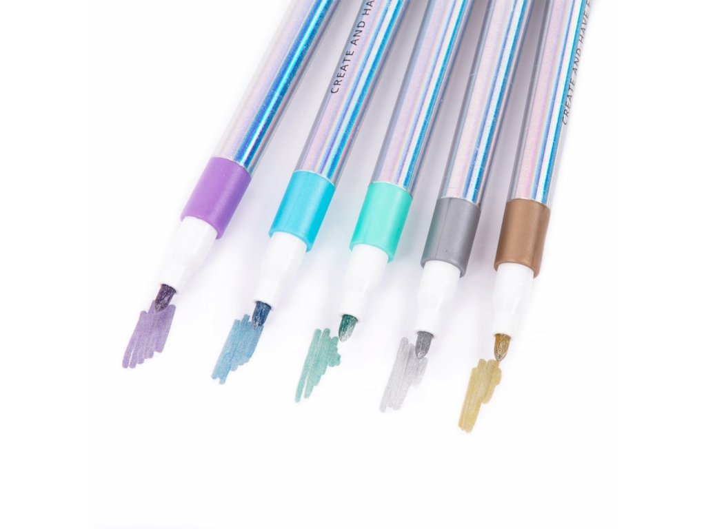 Metalické fixy v 5 intenzivních barvách - fialová, modrá, zelená, stříbrná a zlatá.