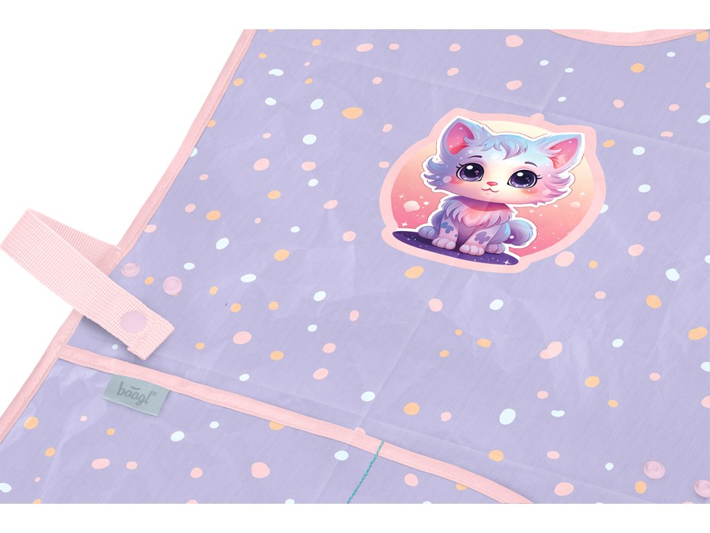 Chraňte oblečení svého malého školáka praktickou zástěrou na výtvarnou výchovu. Zástěra s motivem roztomilé kočičky má nastavitelný popruh, díky němuž ji snadno přizpůsobíte aktuální výšce dítěte, a je vyrobena z kvalitního omyvatelného materiálu.