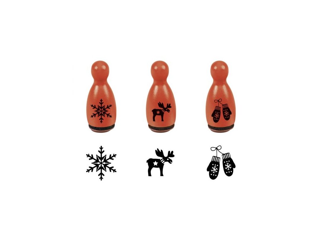 Sada 3 ks dřevěných razítek ve tvaru kuželky s norskými vzory, baleno v sáčku. Kvalitní a oblíbená razítka Heyda.