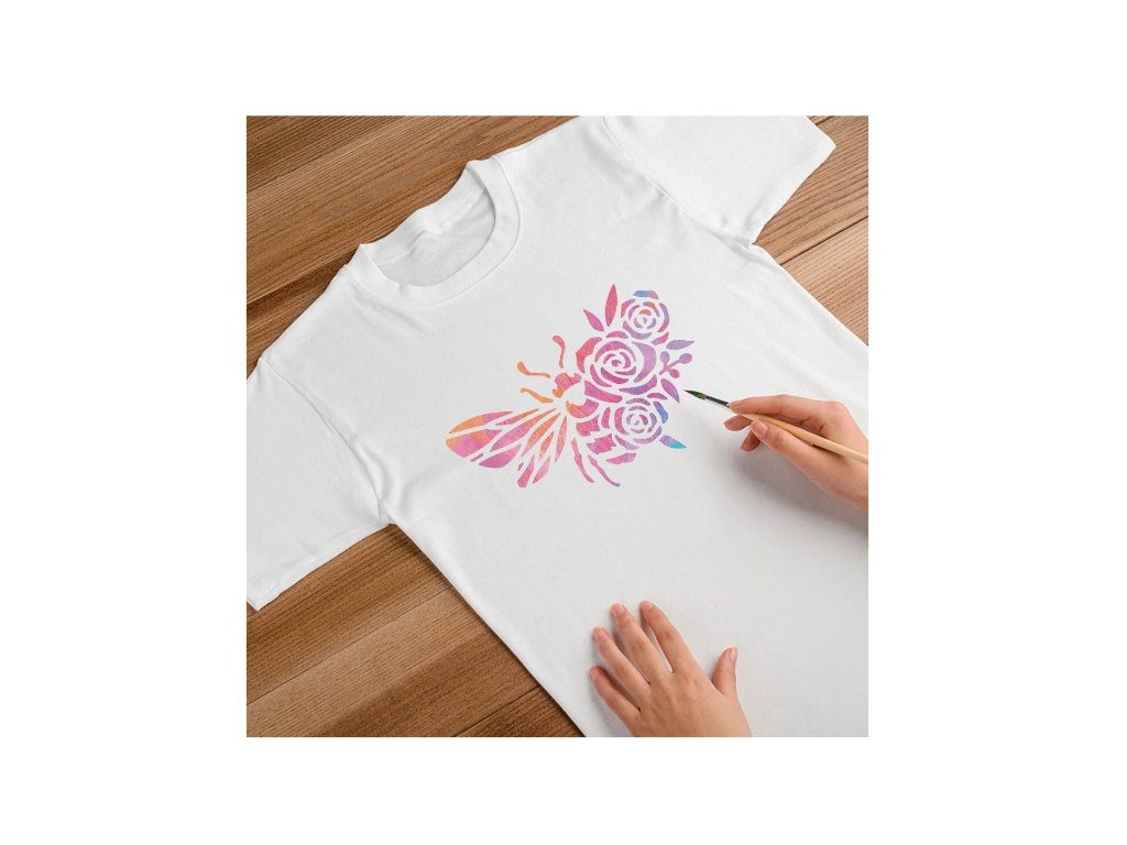 Šablona vhodná pro práci s textilními či akrylovými barvami a techniku savování. Šablonu lze upevnit k podkladu papírovou páskou nebo fixačním sprejem. Po použití je šablonu možné omýt vlažnou vodou a mýdlem a opatrně očistit.