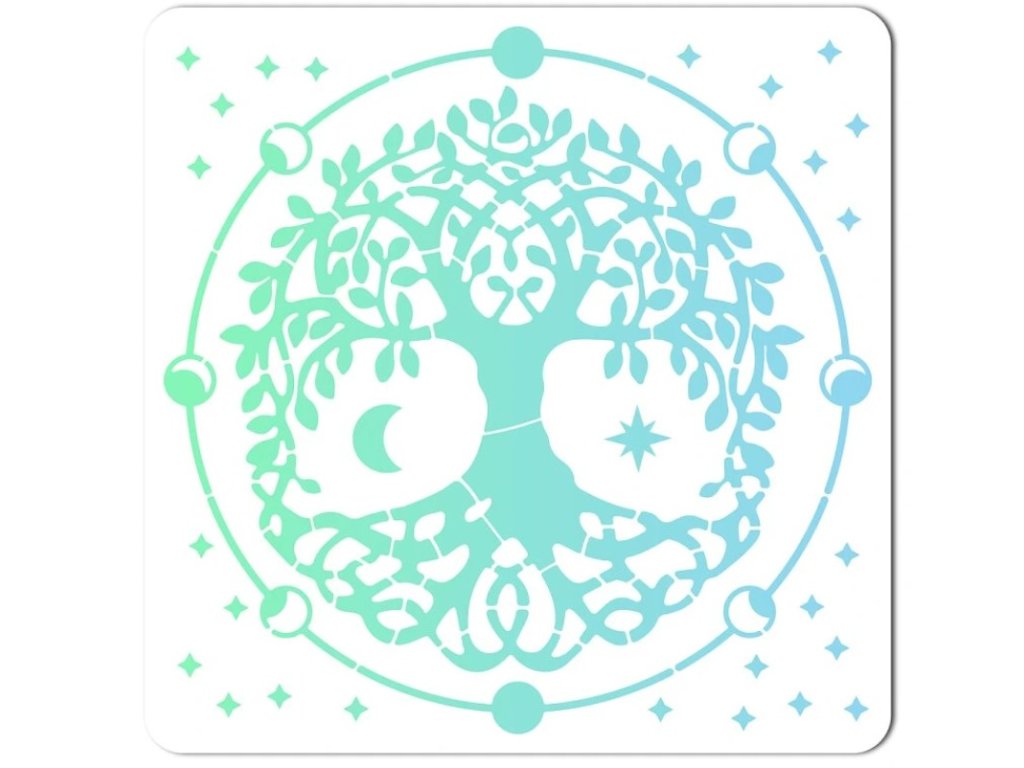 Plastová šablona, STROM ŽIVOTA - FÁZE MĚSÍCE, 30x30cm