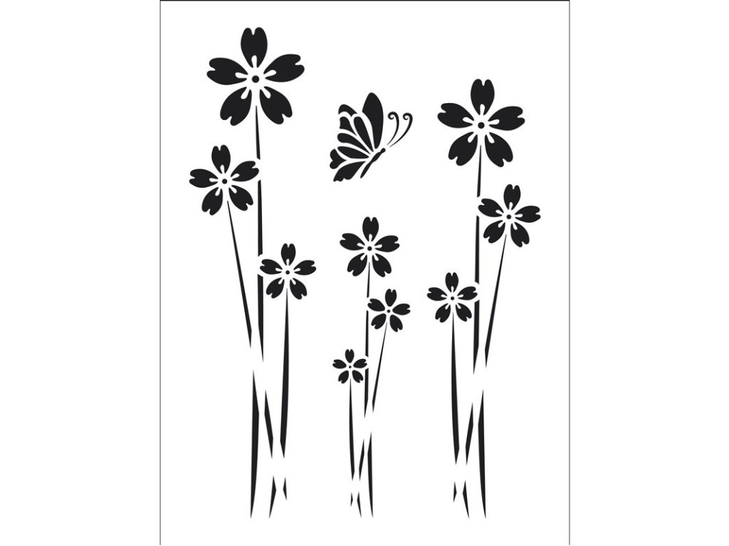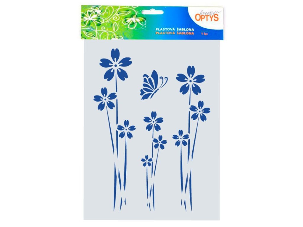 - plastová šablona kytiček s motýlem