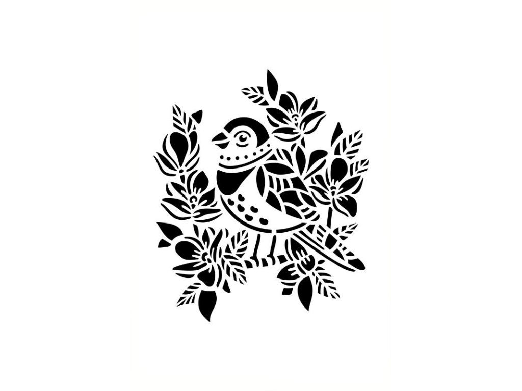 Šablona Ptáček s květy, 20 x 30 cm, plast