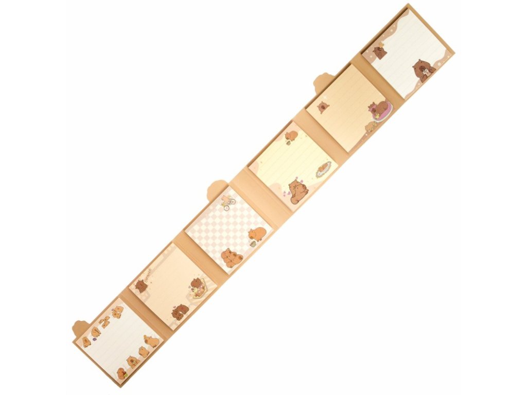 Tento skládací zápisník s motivem kapybary obsahuje šest různých sad poznámkových lístků. Tvrdý, skládací obal účinně chrání stránky před zmačkáním, takže se perfektně hodí do kabelky nebo batohu.