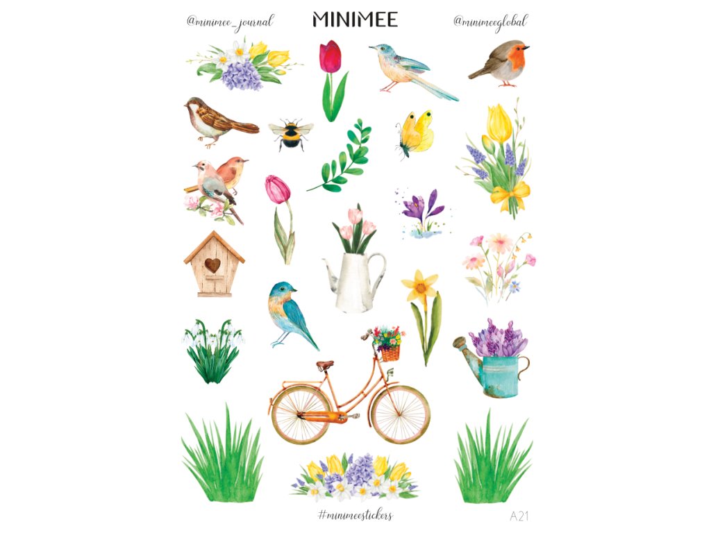 Vyřezávané samolepky s motivy jara a všeho co k jaru patří v aršíku A5. Perfektně se hodí pro tvorbu bullet journalu či scrapbookingu. Kvalitní bílá samolepka matného přírodního vzhledu dobře přilne a drží na většině materiálů.