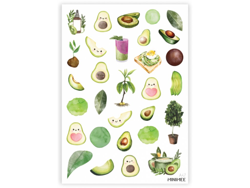 Krásné vyřezávané samolepky v aršíku A5 s motivy avokáda.