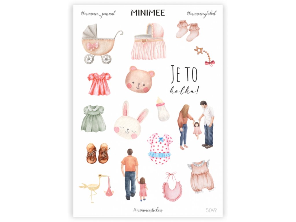 Akvarelové samolepky s motivem pro miminko holčičku. Krásné do vzpomínkových scrapbookových alb.
