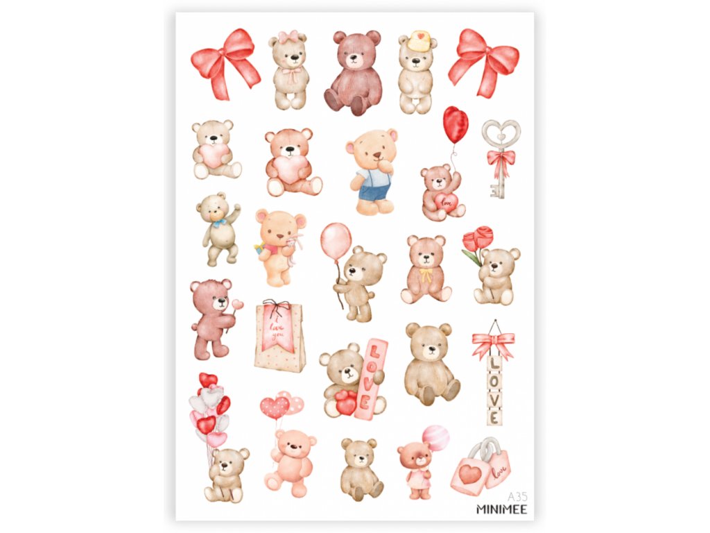 Krásné vyřezávané samolepky v aršíku A5 s motivy medvídků, kteří potěší nejedno dětské srdíčko. Samolepky se perfektně hodí k papíru v MINIMEE nebo papíru v dětském, Mém výjimečném zápisníku. Kvalitní bílá samolepka matného, přírodního vzhledu.