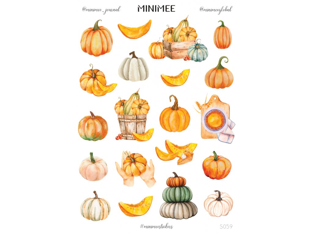 Krásné vyřezávané samolepky v aršíku A5 s motivy podzimních dýní. Kvalitní bílá samolepka matného, přírodního vzhledu.