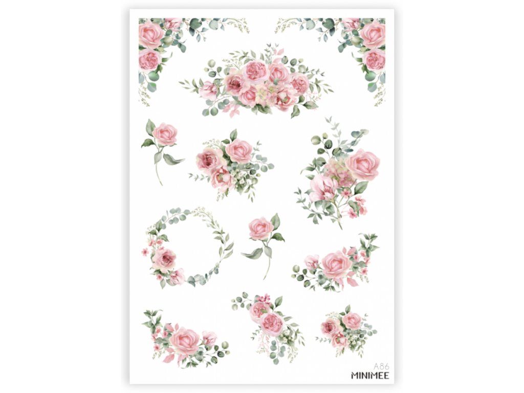 Papírové samolepky v aršíku A5 Sbírka romantických růží