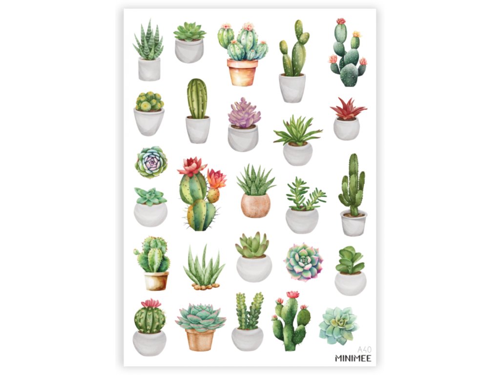 Papírové samolepky v aršíku A5 Sukulenty