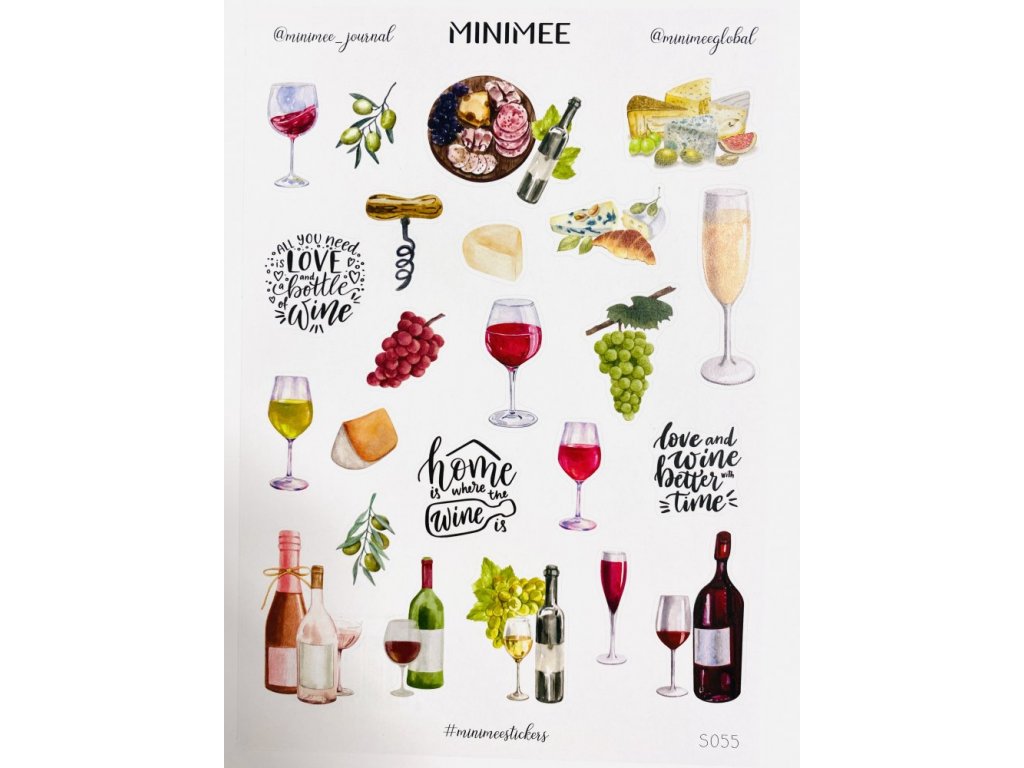 Aršík obsahuje sadu samolepek s motivy vína, lahví, dobrého jídla a všeho co k tomu patří.