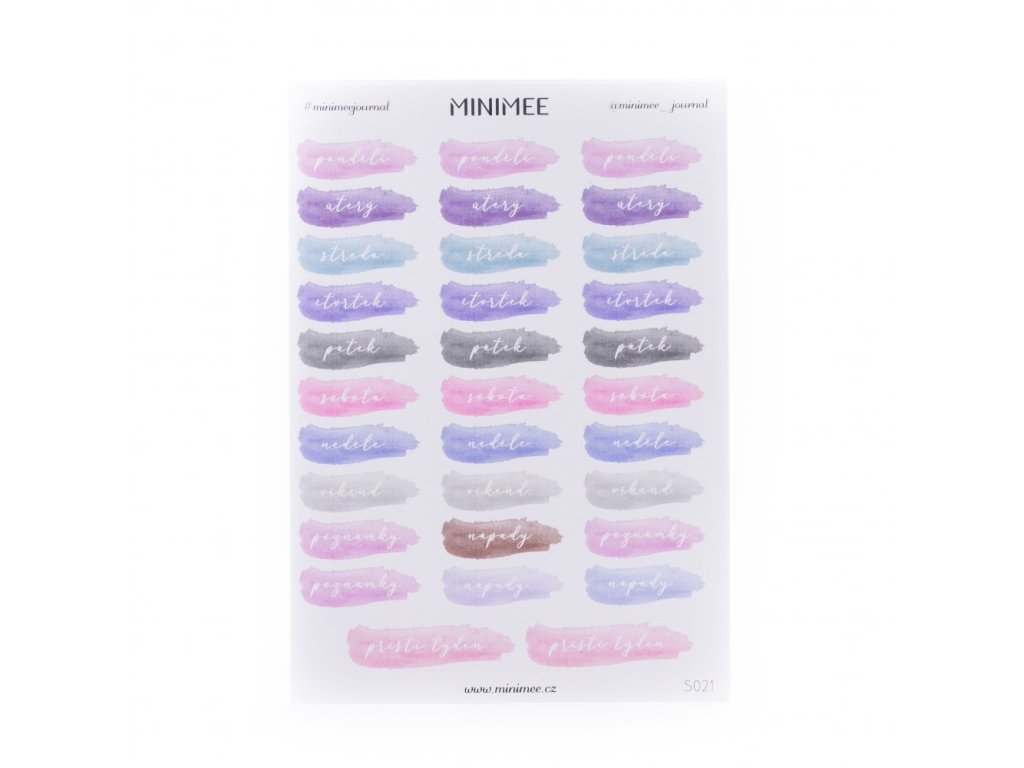Papírové samolepky v aršíku A5 Watercolor dny v týdnu - Universe