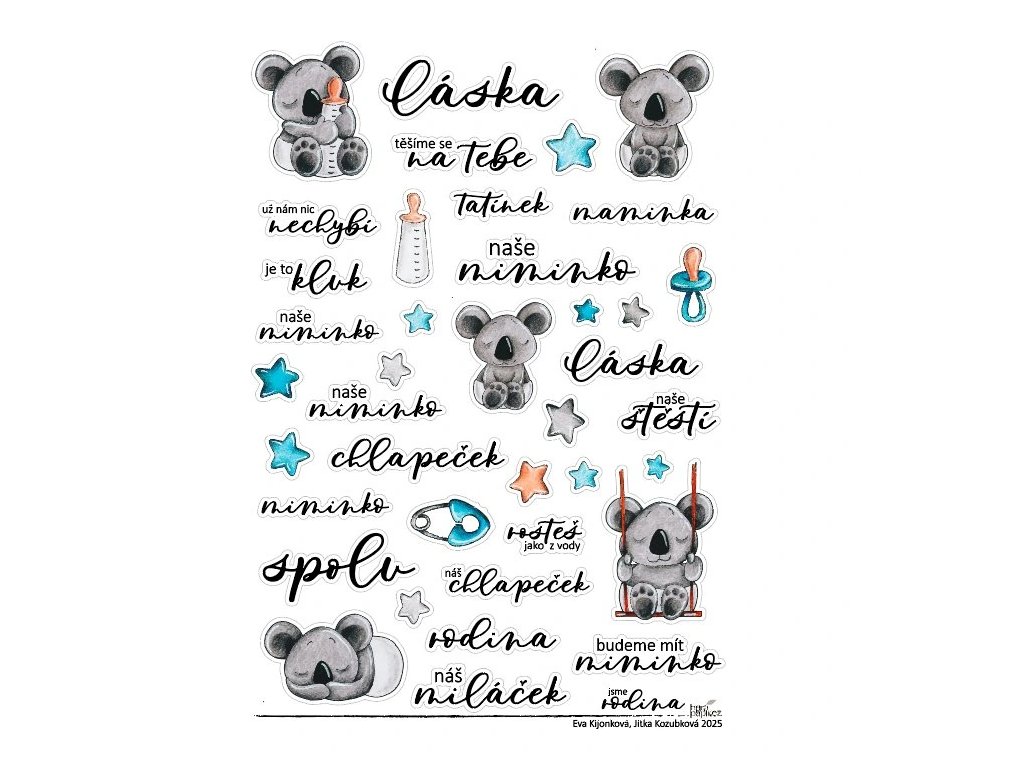 Půvabné samolepky pro chlapečka. Ideální do vzpomínkového alba, fotokniky, nebo na výrobu přání k narození supr kluka.