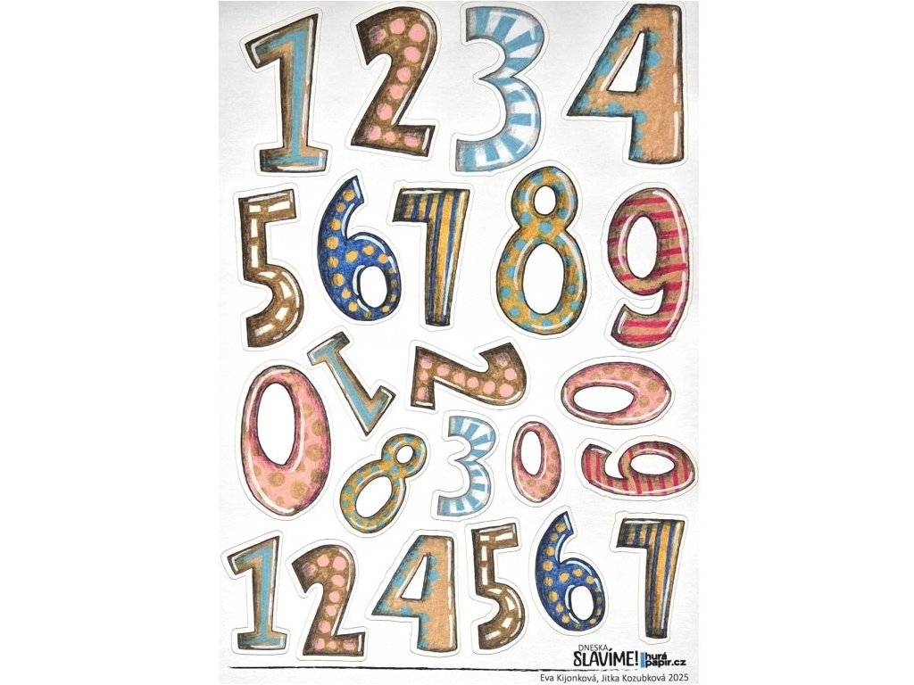 Samolepky jsou natištěny na bílém archu, jsou samolepící, předvyseknuté. Skvělé na dozdobení přáníček, scrapbookových stránek, deníků apod.