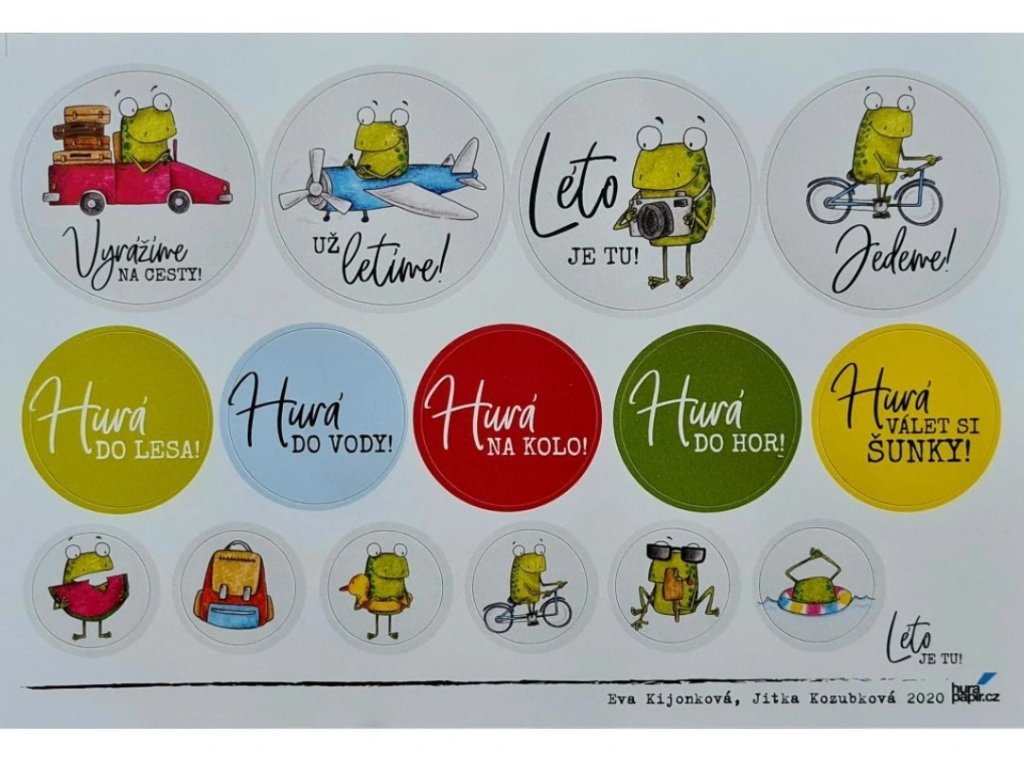 1 ks; arch velikosti A5 ( 14,5 x 21 cm). Neprůhledné samolepky, bílý podklad.