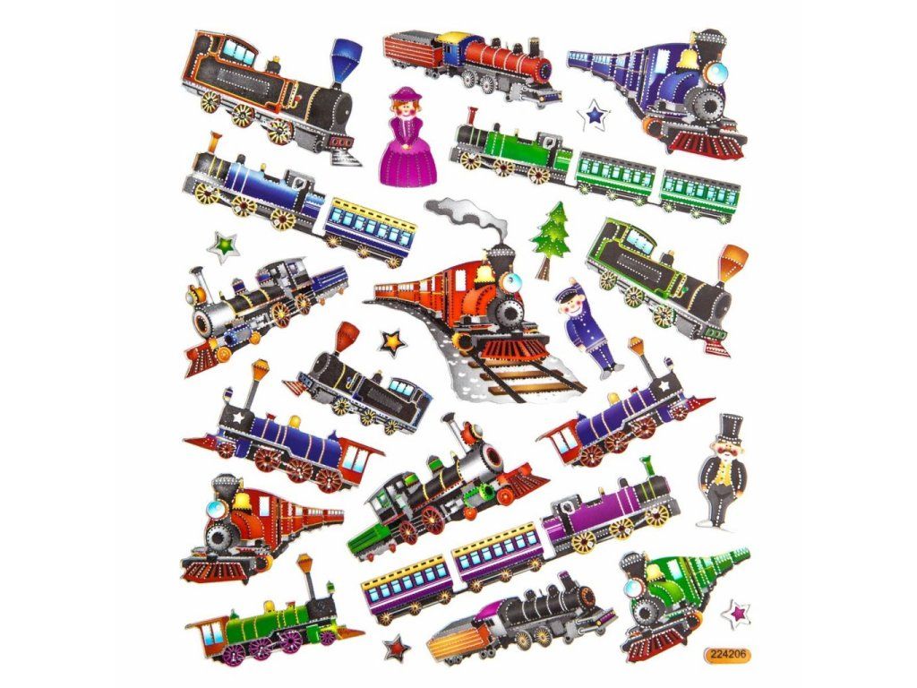 Sada obsahuje 26 originálních samolepek různých typů lokomotiv a doplňků. Vyrobeno z pevného papíru s precizním výsekem pro snadné odlepování. Vybrané prvky jsou zvýrazněny stříbrnou folií, která se krásně leskne na světle.