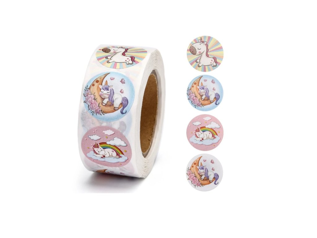 Nálepky na roli s jednorožci jsou ideální pro dotvoření vašich výrobků.
