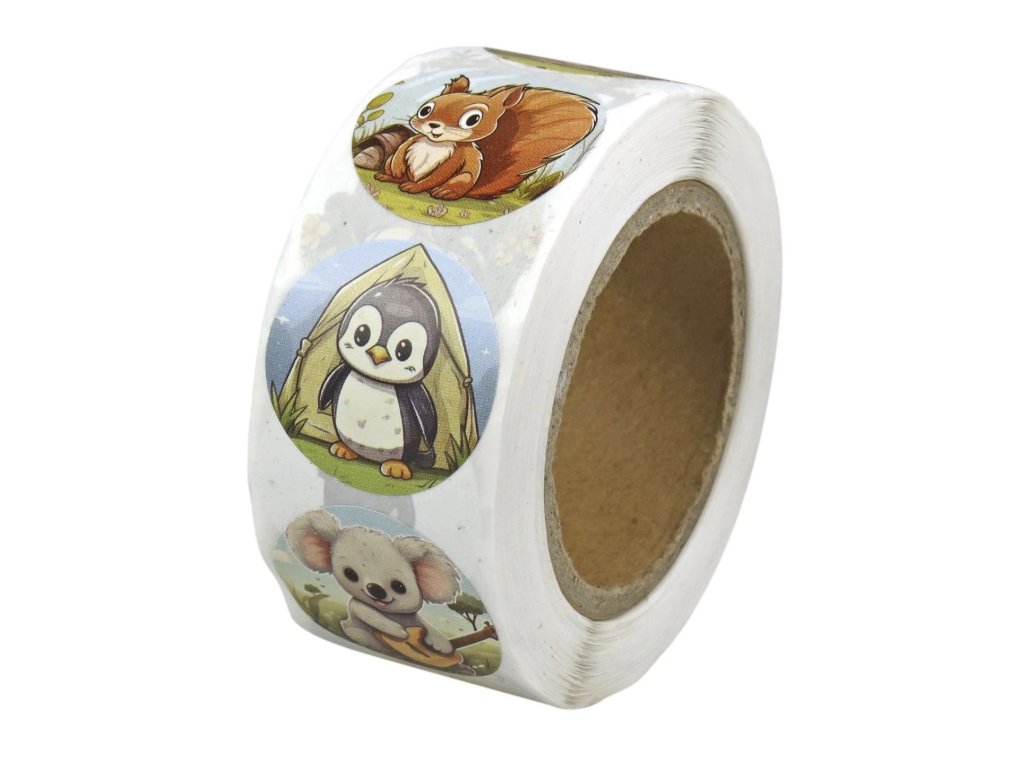 Samolepky v roli kreslená zvířátka 28mm, 500ks/ 1 role