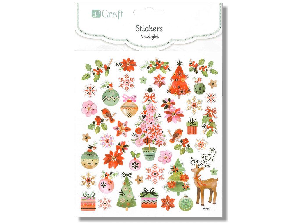 Bohatá sada: Balení obsahuje 43 kusů samolepek s různými vánočními motivy, jako jsou stromečky, hvězdy, dárky a další sváteční symboly.