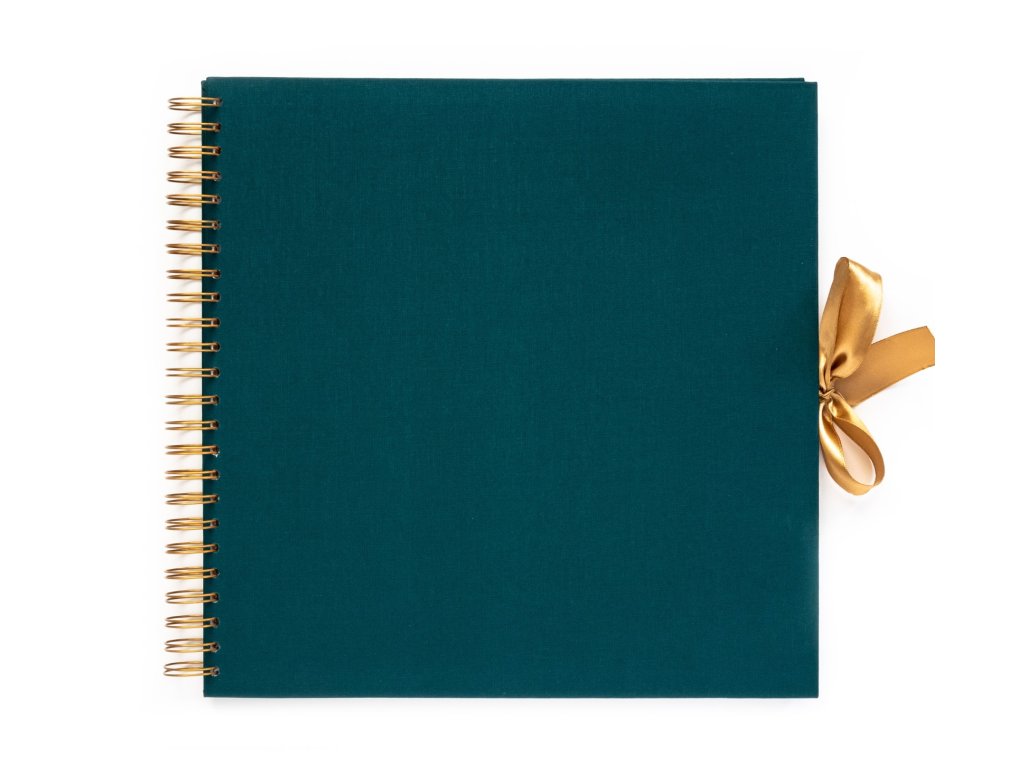 Luxusní album v módní tmavě zelené barvě s lesklou zlatou saténovou stuhou je dokonalým základem pro tvorbu osobních příběhů. Pevný obal potažený dýhou s jemnou strukturou připomínající plátno působí nadčasově a odolně, zároveň však velmi vkusně.