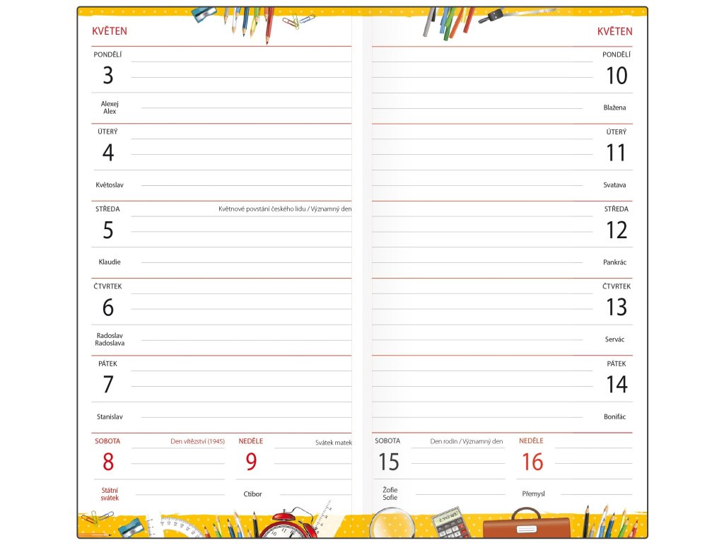 Školní diář na školní rok 2026/2027 je praktický diář s rozvrhem hodin a místem pro zapisování úkolů a poznámek, což z něj činí ideálního společníka pro každodenní organizaci školních povinností.
