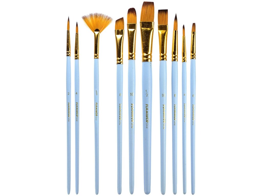 Sada 10 uměleckých štětců se syntetickými štětinami.