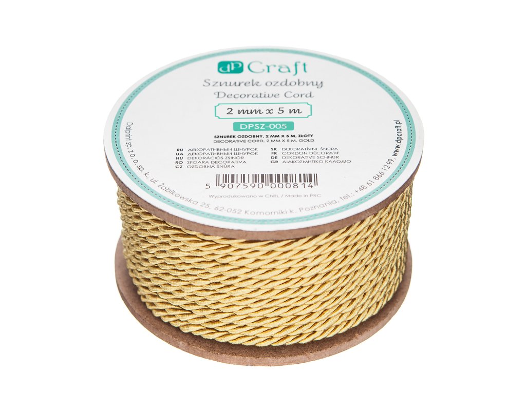 Šnůrka ozdobná 2mm X 5M, GOLD
