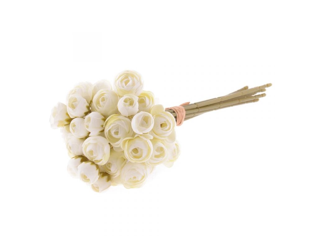 Umělá kytice s 9kusy pryskyřníku v krémové barvě.