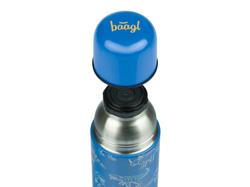 Stylová termoláhev BAAGL s dinosauřím motivem a šroubovacím víčkem, které lze použít jako pohárek na nápoj.