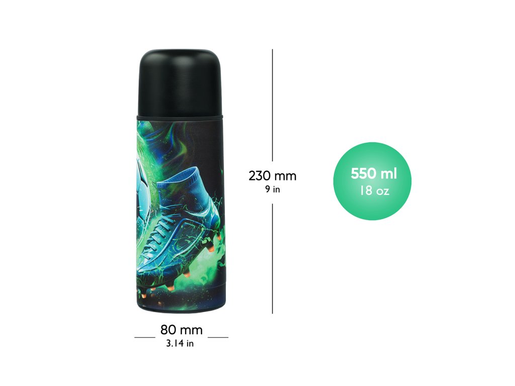 Praktická termoláhev BAAGL se šroubovacím víčkem a motivem fotbalového míče, ideální pro zahřátí v zimních měsících i letní osvěžení.