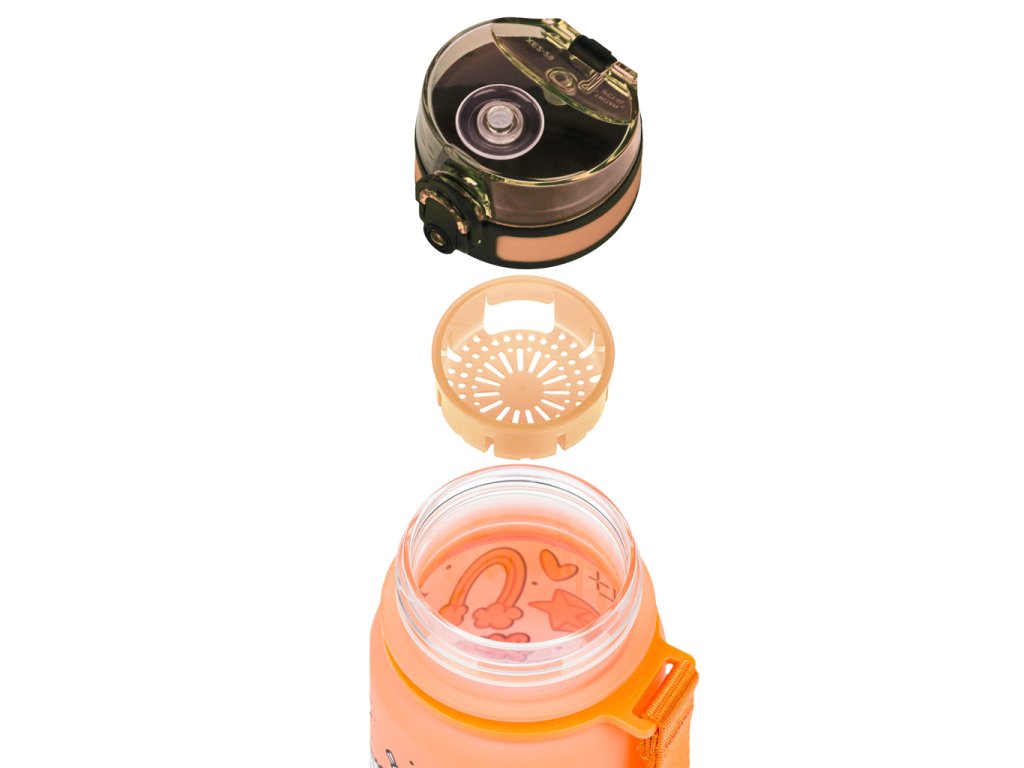 Zdravá tritanová láhev s objemem 500 ml. Součástí láhve s motivem bájných jednorožců je praktické sítko, díky kterému můžete dětem připravovat chutné limonády s ovocem.